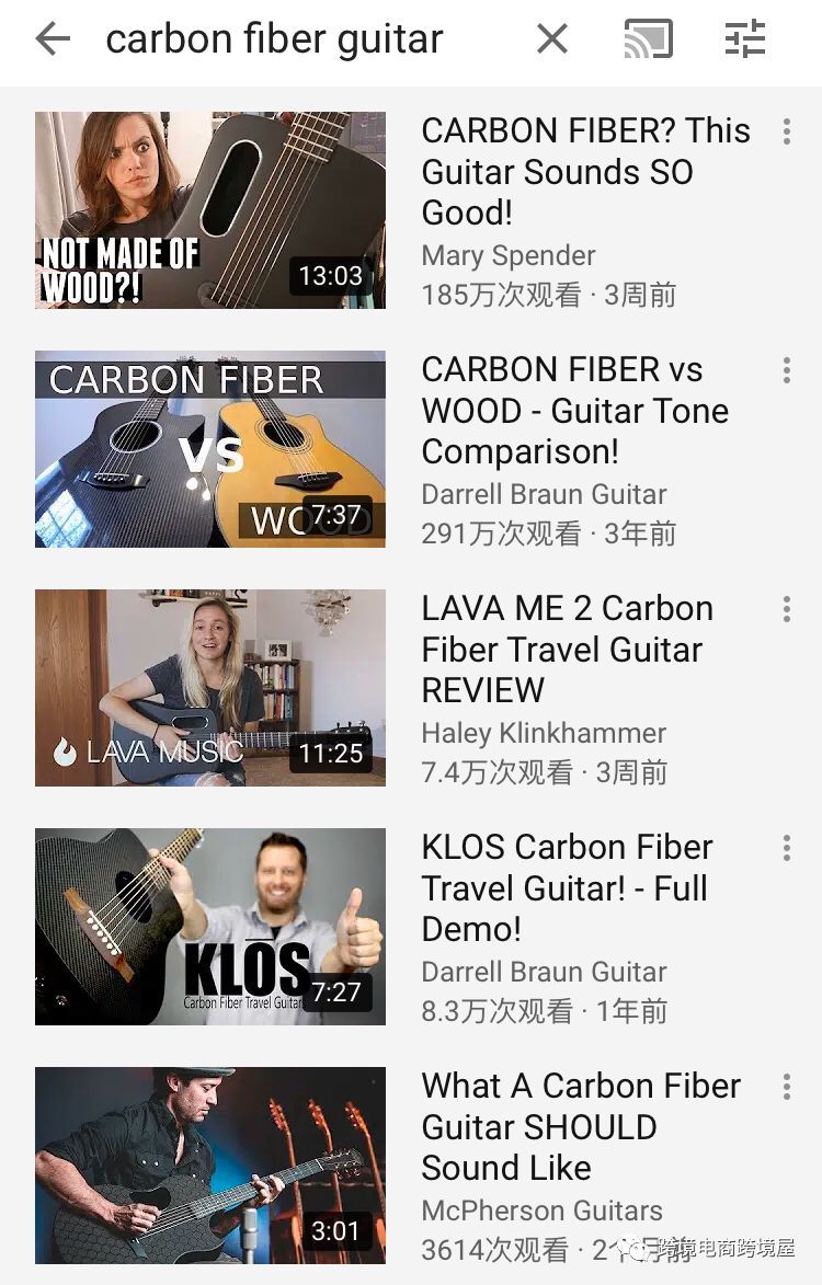 Youtube是LavaMusic的另一个内容发布阵地。LavaMusic找了英国歌手Mary Spender制作了开箱视频。她YouTube上有18.9万订阅者,视频在3周内播放量达到185万,点赞数5.7万。视频在关键词“carbon fiber guitar(碳纤维吉他)”搜索排名第一。