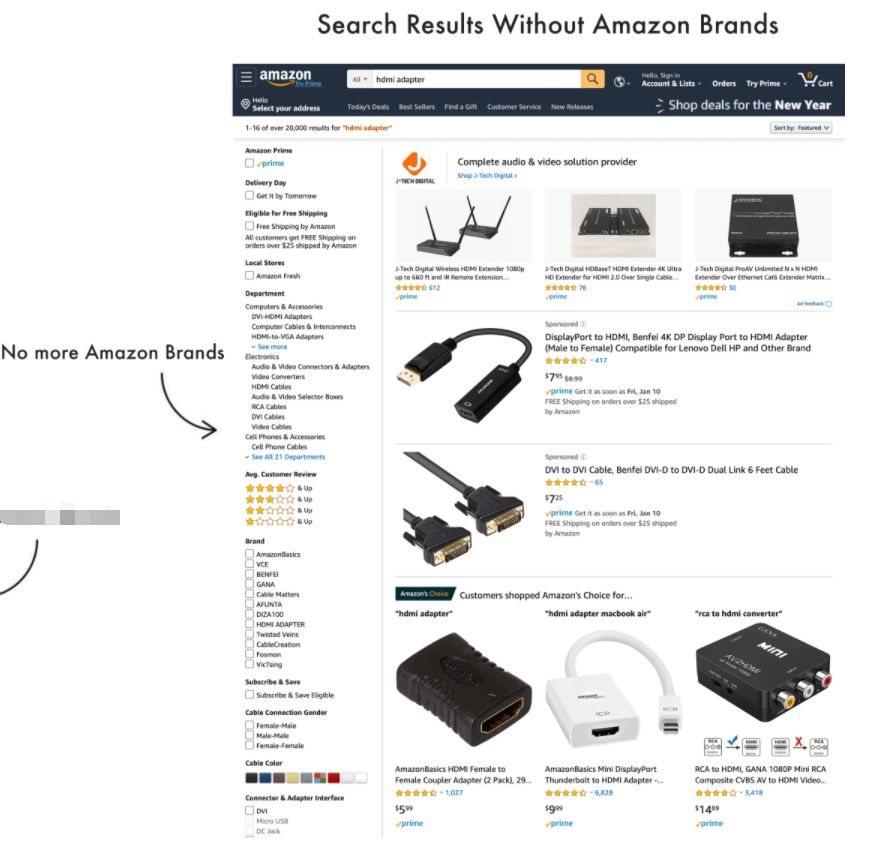 以前,亚马逊在其自有品牌产品的搜索结果可见性方面具有明显优势
