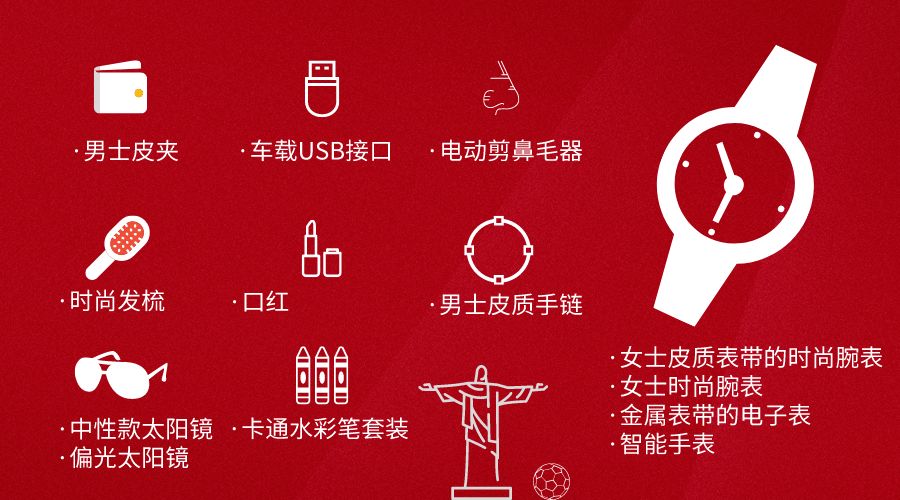 2019年春季,美国市场上的销量最高的20项商品中,配件配饰类产品占据较多席位,包括宝石戒指、花卉形状的戒指、金属手链、耳环、首饰组等;美妆产品中的美甲刷、眉笔、金属色的指甲油等销量也非常可观;厨房用品中的鳄梨削皮去核工具、黄瓜切丝器也挤进了销量TOP 20。图六:2019年2月-4月,英、法、德三国部分销量TOP 20产品欧洲市场的主要国家英国、法国、德国在2019年春季销量TOP 20产品上表现出了极大的相似性。一款时尚发梳在三个国家都是销量NO.1,手机周边产品(如钢化膜、数据线保护器)及车载电子设备的周边产品(如车载USB接口、车载手机支架)等手机周边在三个国家也实现了很好的销售。其中,法国消费者倾向于购买更多女士腕表、时尚手链这样的时尚单品,而德国的销量TOP 20中,还出现了LED灯带这样的家居用品。图七:2019年2月-4月,巴西市场部分销量TOP 20产品2019年春天,巴西市场的销量TOP 20有别于美欧市场,表现出不一样的特色,品类更加多样。除了时尚发梳、口红这样的产品外,电动剪鼻毛器、各类型的太阳镜、卡通水彩笔套装也进入了销量TOP 20。在销量前20的产品中,各类型的手表表现尤为突出,包括女士皮质表带腕表、金属表带腕表、金属表带电子表、智能手表等都表现出了很好的销量。那么,2020年的春季,巴西市场,还要继续卖手表吗?2020年的春天即将开始,在过一个快乐的春节的同时,不要忘记为即将到来的春天做好准备哦~
