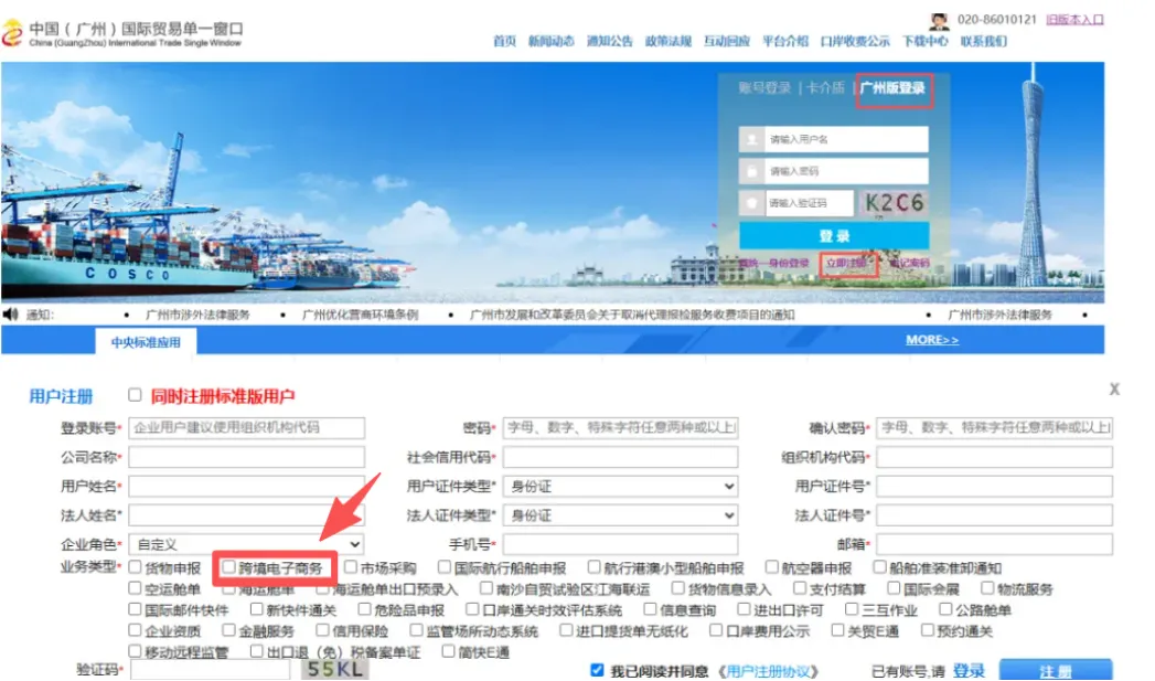 第一步:注册广州单一窗口:进入网址https://gz.gd.singlewindow.cn/,点击立即注册。填写时,要选“跨境电子商务”的模块,如实填企业信息。