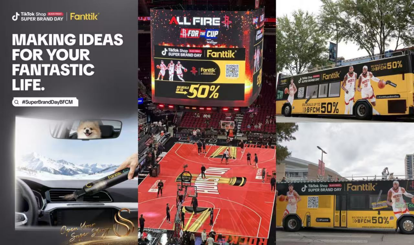 其中,TikTok Shop品牌商家Fanttik的黑五品牌突围,颇具标杆意义。为打破海外市场认知壁垒、深化品牌信任,同时精准触达注重性能、热爱科技的男性核心客群,Fanttik与NBA休斯顿火箭队达成深度合作,展开了一场极具视觉冲击力和品牌联动效应的跨界营销活动。