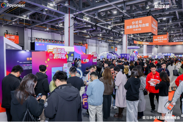 金融科技公司Payoneer派安盈(纳斯达克股票代码:PAYO)受邀出席并设置专属展区,集中展示其一站式金融全栈和跨境金融生态体系,为亚马逊卖家提供从收付款、资金管理到生态资源对接的全链路赋能。现场人潮涌动,众多卖家驻足咨询,交流氛围热烈。