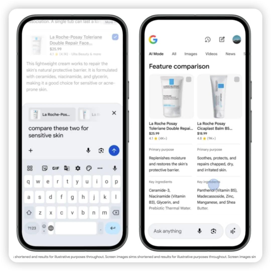 这样一来,两者形成了良好的配合。Gemini主要理解用户“想买什么”,而Google Shopping所沉淀的商品数据库,决定了用户“能买到什么”。