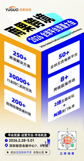 若是对于2026年的增长之道仍然存疑,不如来雨果全球平台资源大会中找找商机。2月28日-3月1日,2026全球平台资源大会将在深圳福田会展中心重磅开启,此次大会不仅有亚马逊等成熟平台的新机会点,还有BestBuy、Target等蓝海平台的入驻资源,更有数十场闭门私享会精准解决增长痛点……【点击此处快速报名,2026年高效搞钱不迷路!】