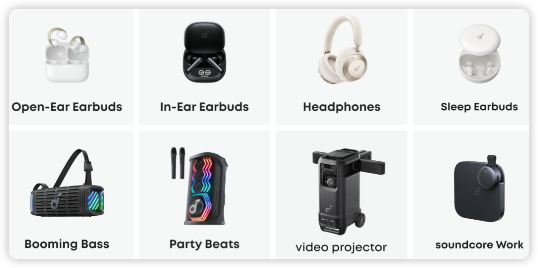 安克旗下智能影音品牌Soundcore,是安克发力“硬件+AI”赛道的排头兵。该品牌成立于2017年,产品线覆盖蓝牙耳机、睡眠耳机、便携式蓝牙音箱、投影仪等多个领域。