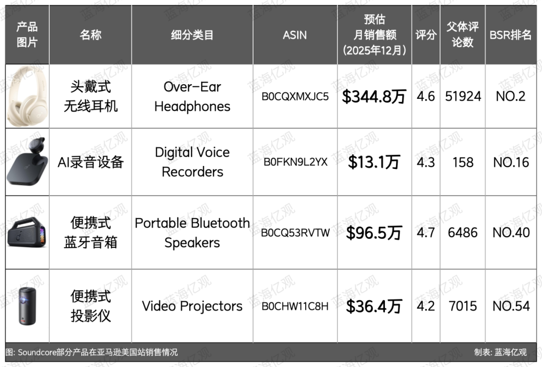 作为安克在海外的主要销售渠道,Soundcore在亚马逊北美站的整体颇为亮眼。