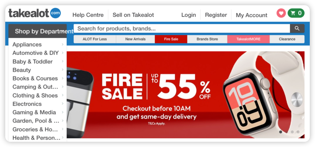 相比之下,Takealot的本土店入驻门槛相对更高,需卖家持有南非本地营业执照,通过官方合作渠道办理。除资质外,卖家还需准备护照、英文公司名称等资料。总体而言,本土店能够获得平台更多的流量扶持,还能加入“TakealotNow”等快速配送服务,对提升转化率有较大帮助。