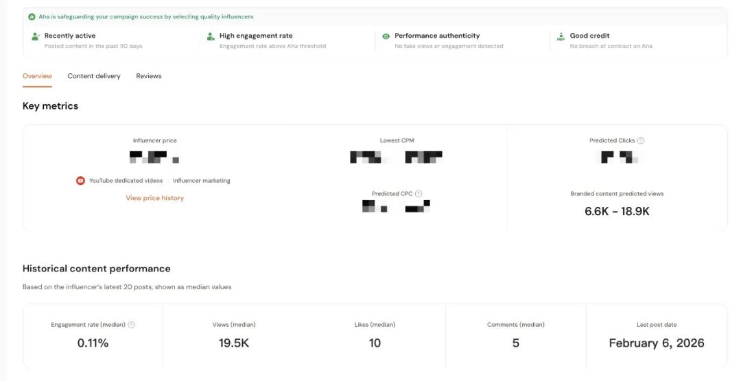“接管”大量机械的人力工作,提高效率,是AhaCreator的基本功,但它更重要的能力,应该是帮助品牌找到“真正适合的达人”。