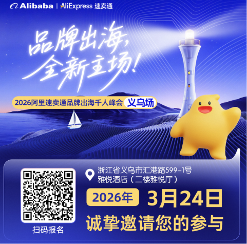 同时,据AMZ123最新调研显示,87%的亚马逊卖家计划将速卖通作为品牌出海的第二增长曲线。2025年,速卖通全面升级了“超级品牌出海计划”,明确提出以亚马逊一半成本,为品牌带来全新增量,过去一年来,速卖通已吸引小米、泡泡玛特、倍思、荣耀、努比亚等大量中高端品牌加速入驻。3月24日,速卖通品牌出海千人峰会还将落地义乌招商,感兴趣的商家可以抓紧扫描下方二维码报名。