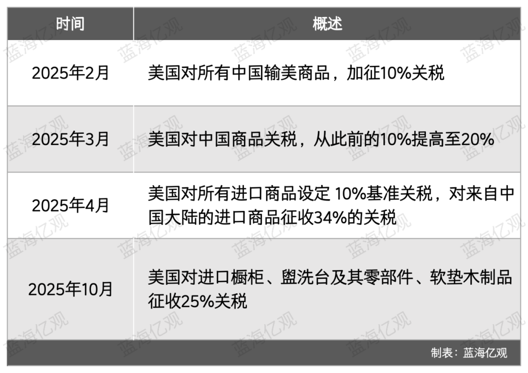 2025年上半年,美国连续3个月,对来自中国的进口商品,累计加征几十个百分点的关税,在2025年10月,专门针对橱柜、盥洗台、软垫木制品等提高关税。这些加征的关税,几乎非常精准地“命中”了傲基的主营品类。