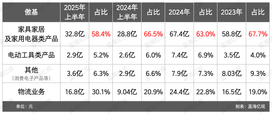 2025年上半年,傲基“家具家居及家用电器类”的营收约32.8亿,相比2024年同期增加了13.6%,“电动工具类”以及“其他类”商品的收入也在增长。