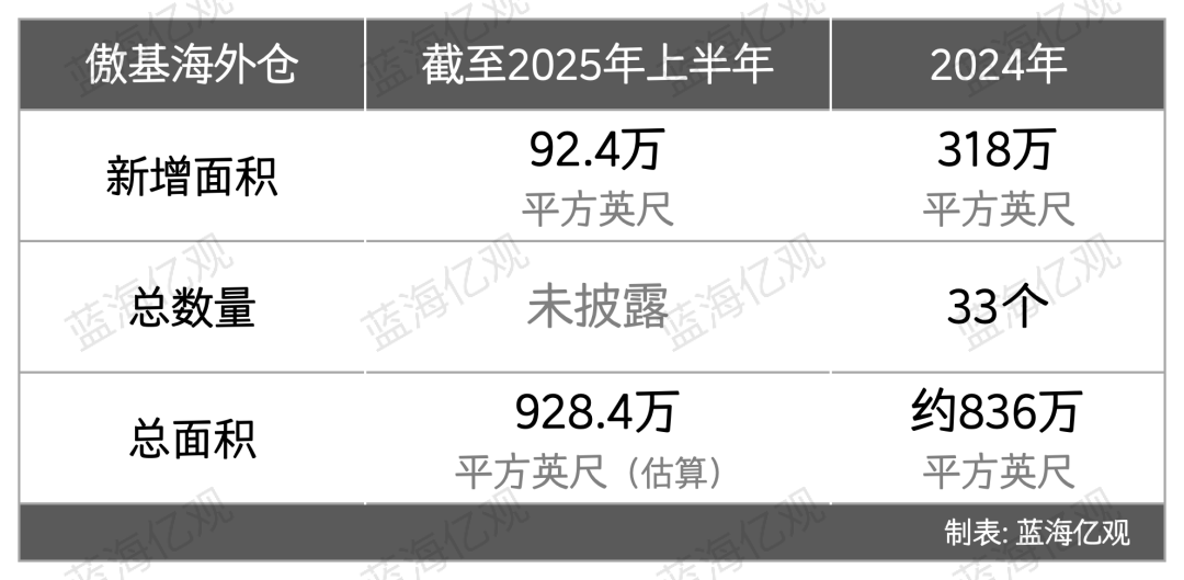 2025年上半年,傲基没有停止扩张的步伐,又新增92.4万平方英尺仓库面积。