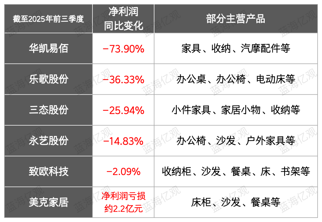2025年前三季度,华凯易佰、乐歌股份、三态股份、永艺股份等公司,净利润同比均大幅度下滑。