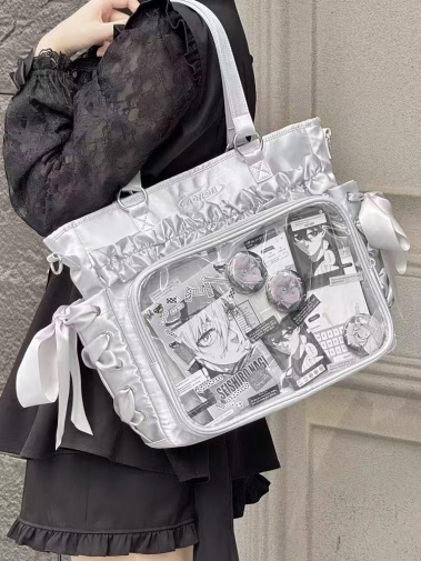 “透明包身内,展示自己喜欢的动漫徽章、毛绒玩偶、明星周边——这就是源自日本二次元文化的“痛包”。”