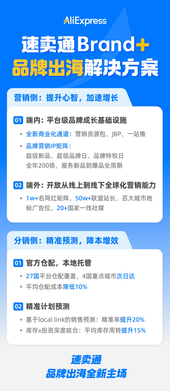 具体而言,速卖通Brand+计划依托“营销与分销”双轮驱动,试图解决品牌出海最头疼的“声量”与“履约”问题。