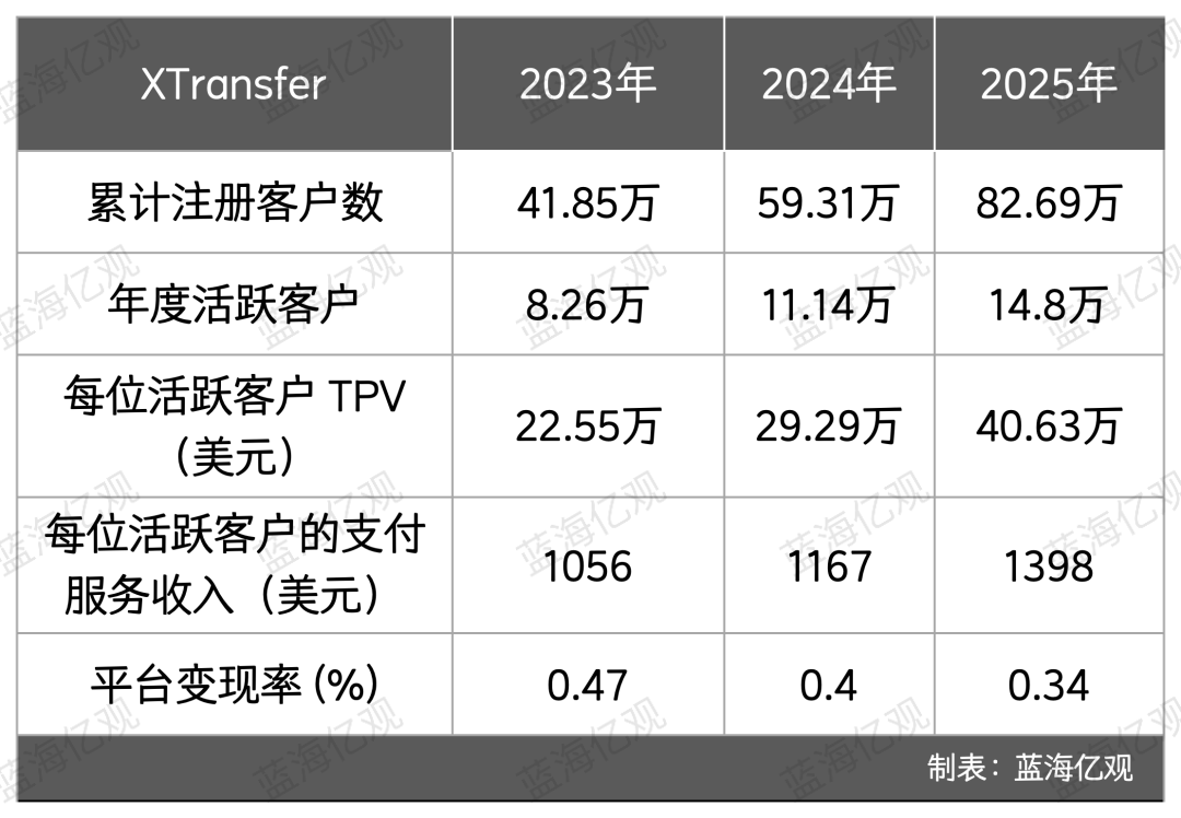 在极低的费率和地毯式的营销动作的推动下,XTransfer的TPV(总支付价值或总交易额)持续增长,从2023年的186.33亿美元,增长到2025年的605.16亿美元,复合年增长率为80.2%。
